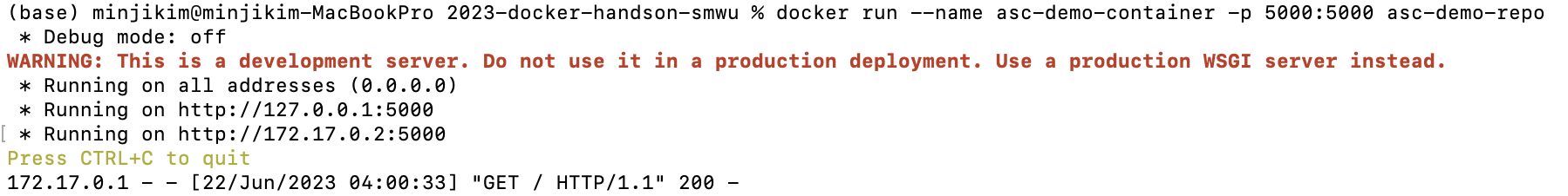 맥북에서는 5000번 포트를 AirPlay가 사용하고 있으므로, 5000번 포트를 사용하고 싶다면 설정에서 General > AirDrop & Handoff > AirPlay Receiver를 꺼주면 된다. 나는 잠깐 실습만 하는거라서 끄고 진행해주었다.